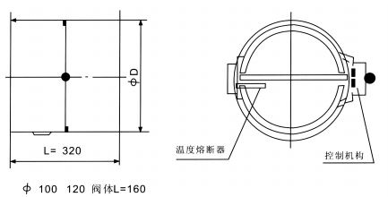 • 此閥平時常開,易熔片70℃時熔斷,靠葉片自垂將閥門關閉,可通過檢查孔手動復位。若閥體長度短時則不設檢查孔。
